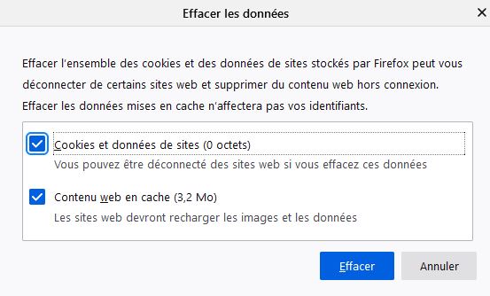 - Ouvrez les paramètres du navigateur Firefox via le menu à 3 barres dans le coin supérieur droit. Sélectionnez maintenant l’élément de menu « Confidentialité et sécurité » sur le côté gauche. Descendez un peu jusqu’au point « Cookies et données du site », cliquez sur le bouton droit « Effacer les données ». Assurez-vous qu’au moins la case « Cookies et données du site Web » est cochée avant de cliquer sur « Effacer ». Veuillez confirmer la fenêtre popup en cliquant sur « Effacer ».